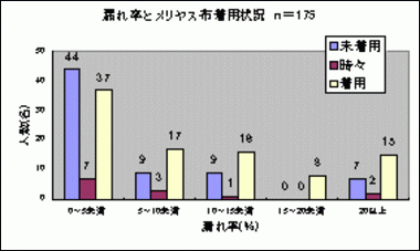 図1に示すが、多少の問題はあるものの、マスク着用が有効と考えられる漏れ率5%未満のものは175名中88名約50%にすぎなかった。